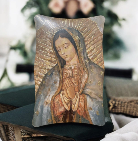 Cuadro sobre legno Virgen de Guadalupe, 10 x 15. Para colgar y con pié. Importado.